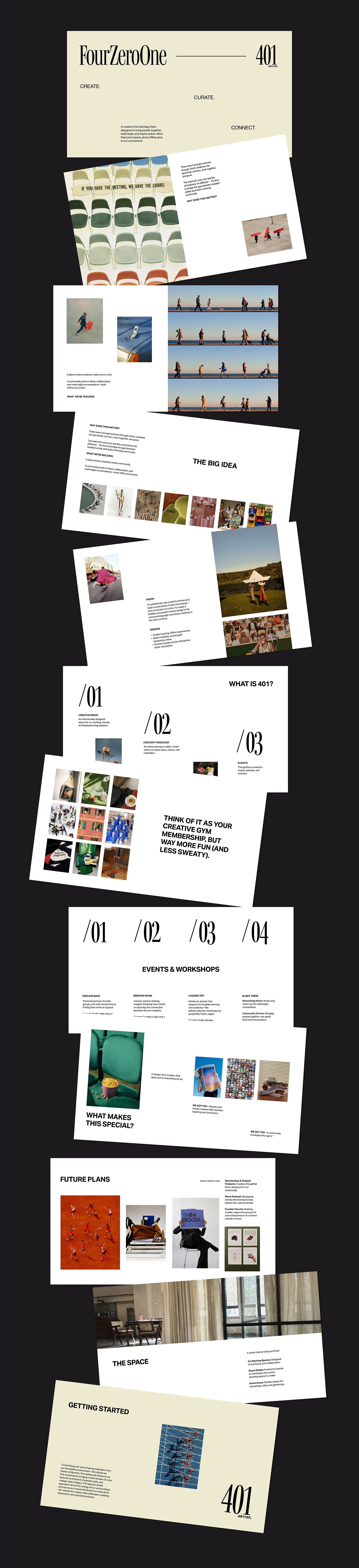 The identity of 401 extends from Almst Studio, balancing cohesion with adaptability. It’s a carefully curated yet creatively flexible identity—minimal and clean, reflecting Almst’s design approach. While the core visual language remains consistent for clarity and recognition, we introduce thematic shifts quarterly to keep the brand fresh and relevant. We have encapsulated this vision in the form of a digital booklet.