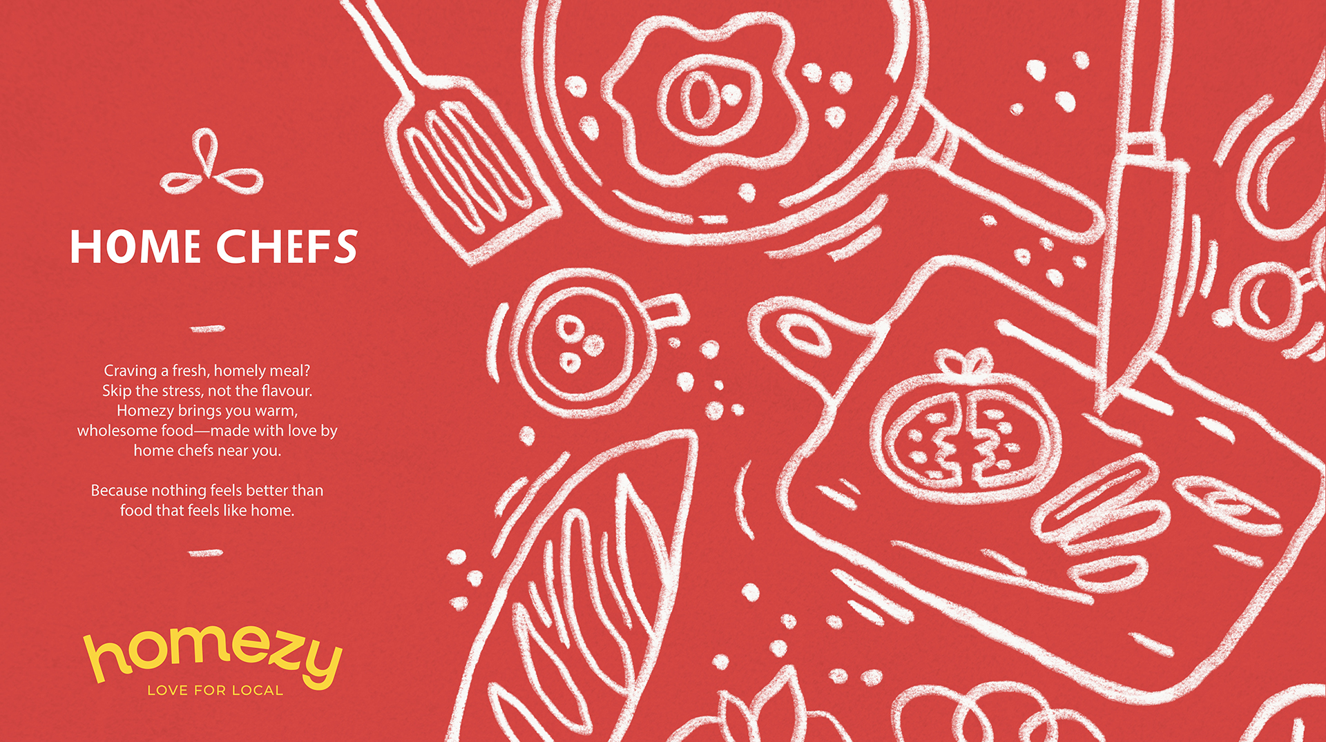The brand identity reflects this warmth and intent through a vibrant colour palette inspired by the spices and ingredients of Indian kitchens, and a hand-drawn, imperfect illustration style that captures the authenticity of home cooking. Designed to feel simple yet bold, organic yet modern, the identity creates a heartfelt connection between those who cook with care and those who find comfort in every bite.
