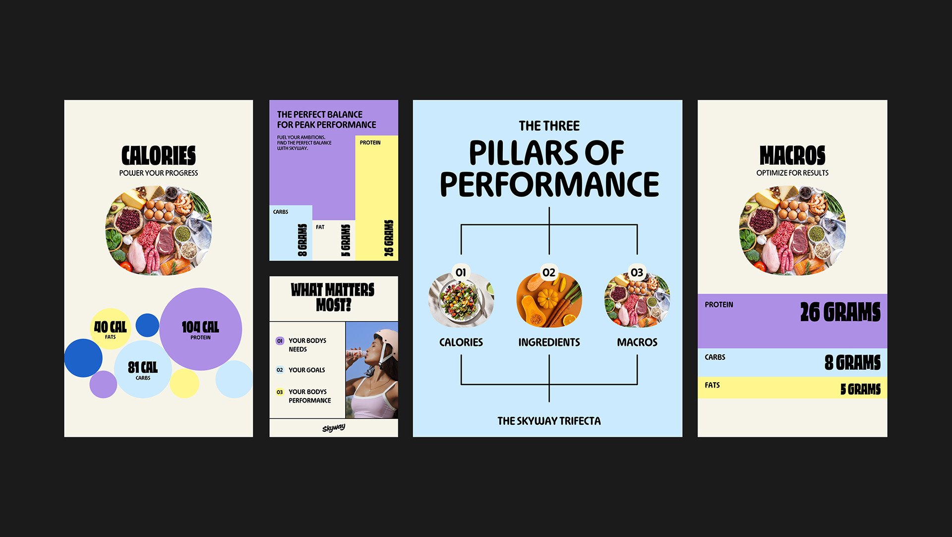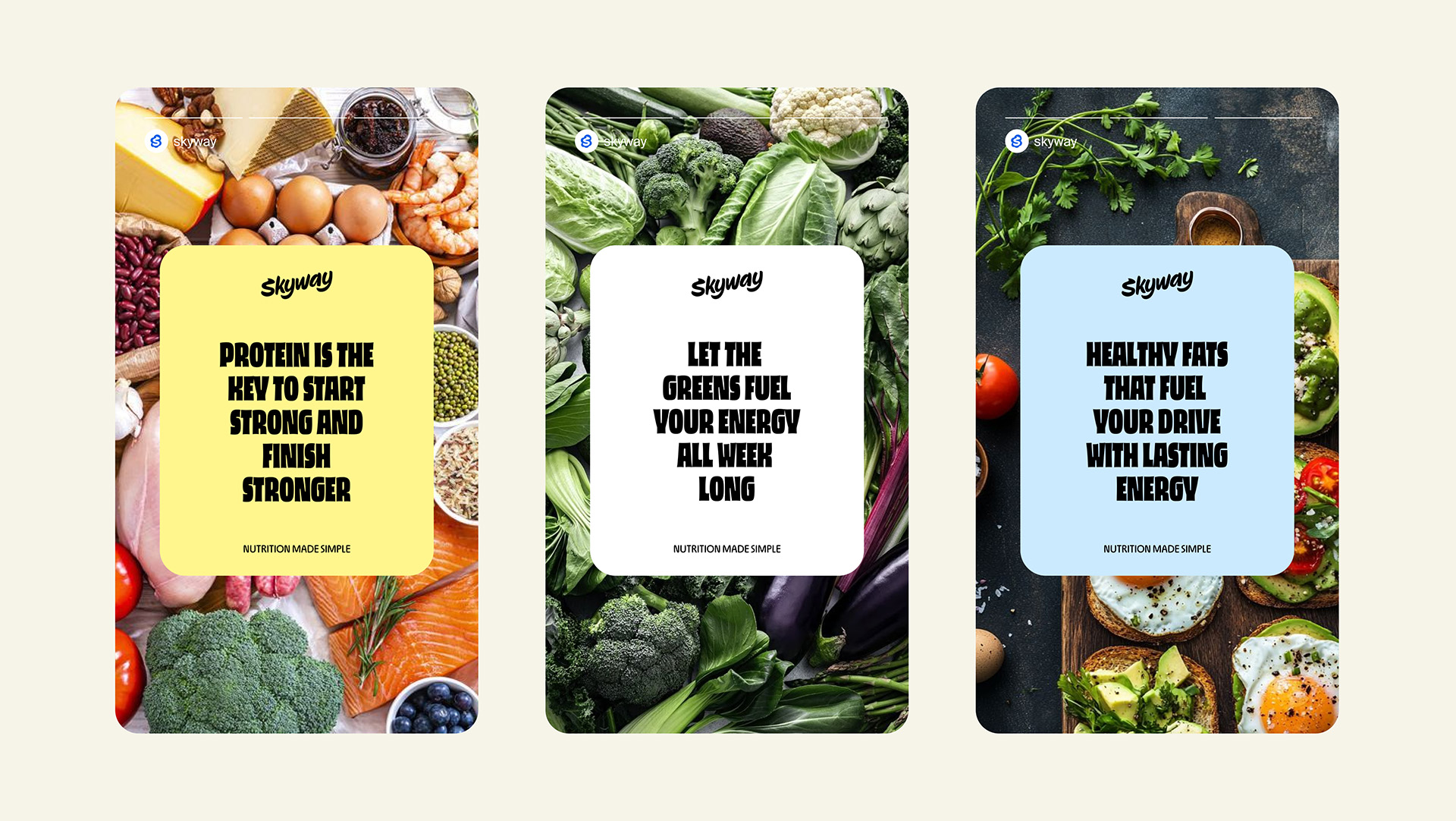 The feed blends vibrancy with a clean, aspirational aesthetic, where irresistible visuals pop while maintaining a curated, premium feel. Every post seamlessly integrates into a gallery of fitness, flavour, and ambition—reinforcing Skyway’s mission to make healthy eating effortless, exciting, and undeniably delicious.