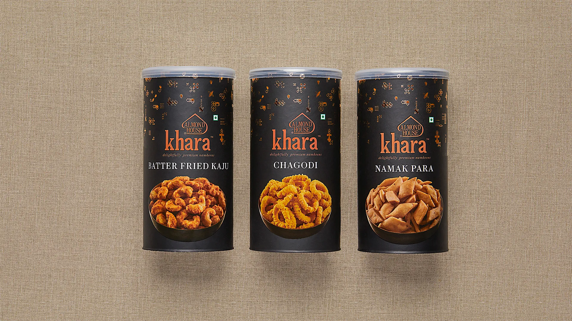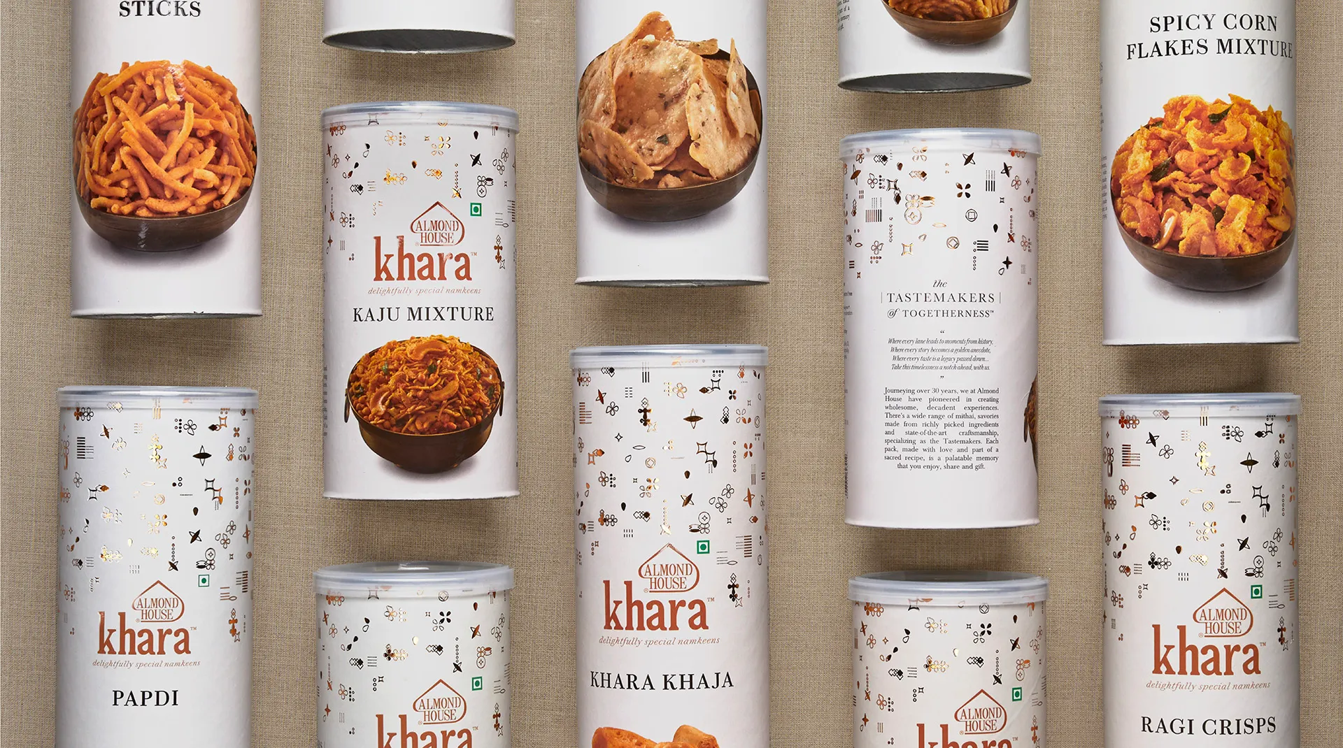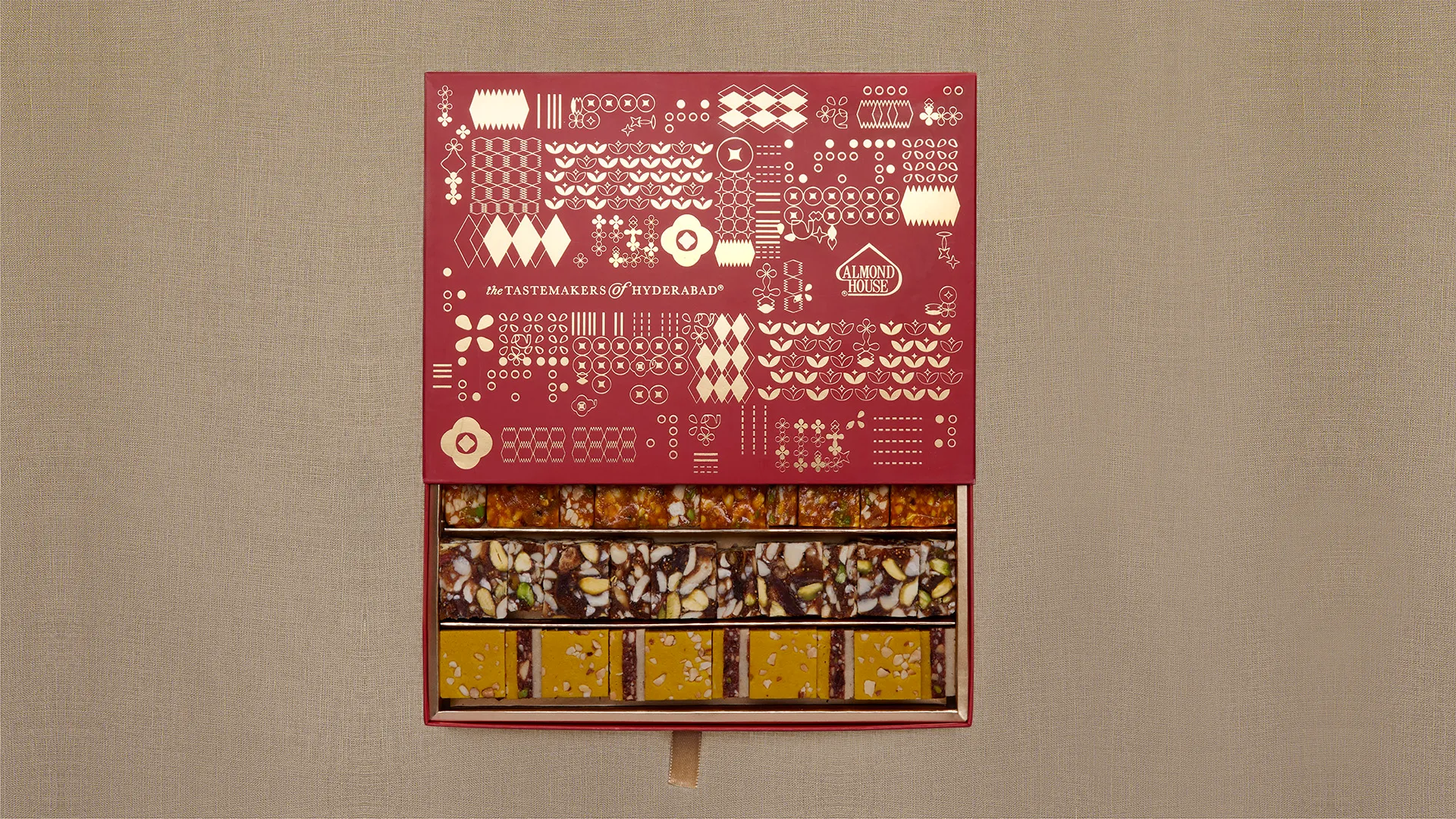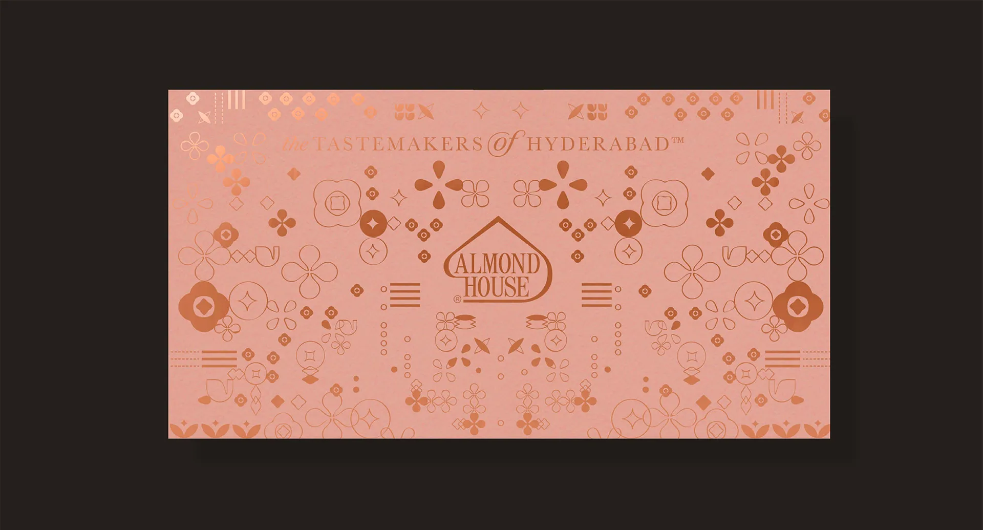 The design approach for Almond House's rebranding centered on harmonizing traditional Indian aesthetics with contemporary design sensibilities. By drawing inspiration from the intricate forms of Indian sweets and savories, custom motifs were developed to create distinctive patterns for each product category. Towing the very line of handcrafted goodness and technical excellence in every pattern created just like in every delicacy they curate.