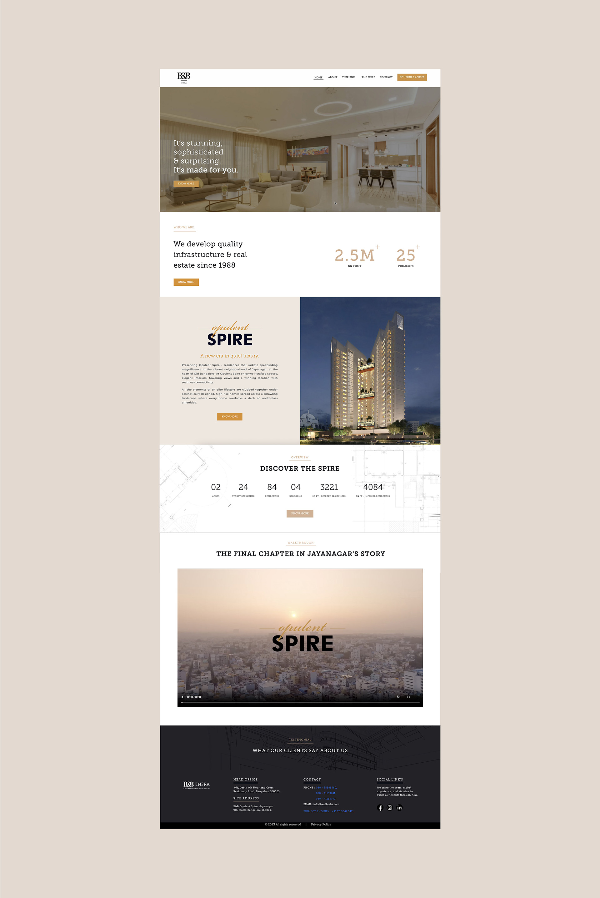 B&B Infra approached me for a brand refresh to better reflect their legacy, values, and position in the luxury real estate market. Their previous identity-marked by bright colours and a generic, templated system-did not align with the boutique and refined nature of their work.