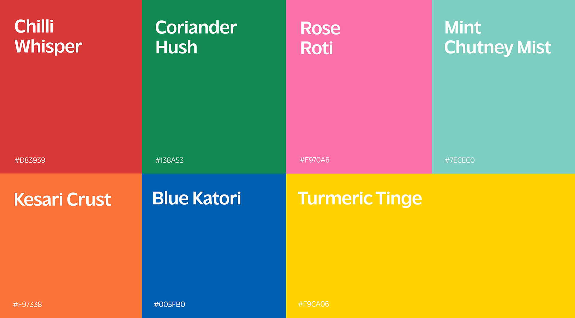 The brand identity reflects this warmth and intent through a vibrant colour palette inspired by the spices and ingredients of Indian kitchens, and a hand-drawn, imperfect illustration style that captures the authenticity of home cooking. Designed to feel simple yet bold, organic yet modern, the identity creates a heartfelt connection between those who cook with care and those who find comfort in every bite.