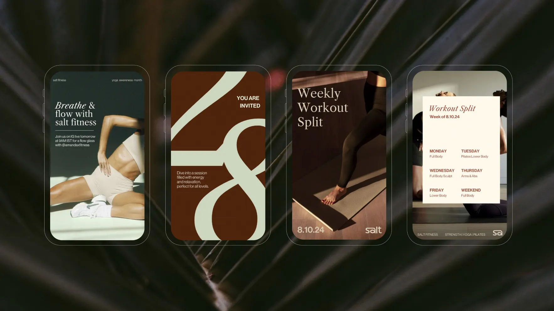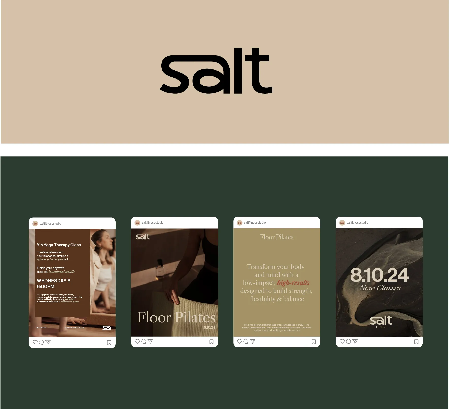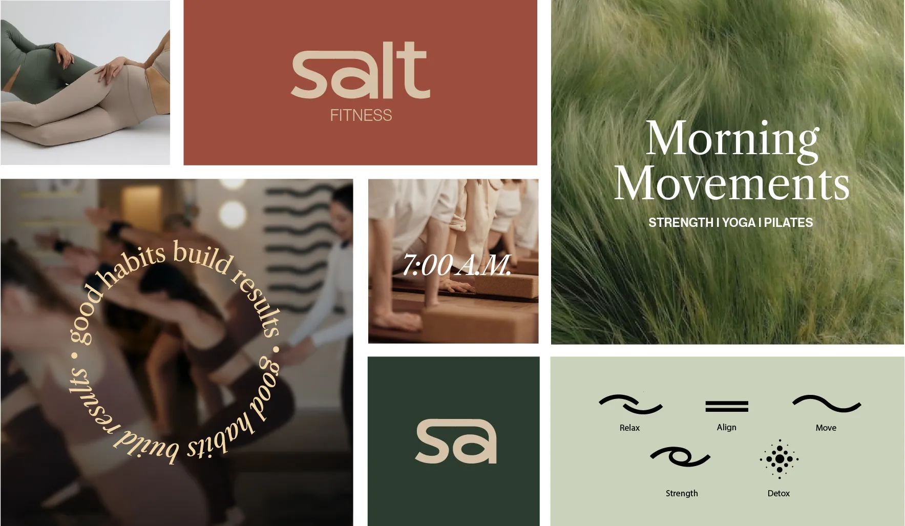 Salt Fitness Studio partnered with Almst to develop a brand identity that embodies their core values of balance and a deep connection to nature. Drawing inspiration from earthy tones and organic macro elements, we designed a visual identity that feels grounded, harmonious, and aligned with their community’s spirit.
